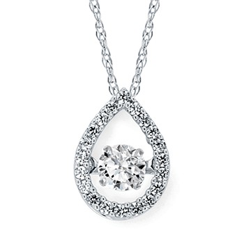 14K White Gold Diamond Tear Drop Shimmering Halo Pendant